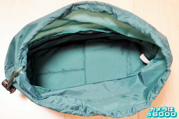 サイドと下部は適度に厚みがあり、クッション性抜群です。巾着っぽい仕様になっています。