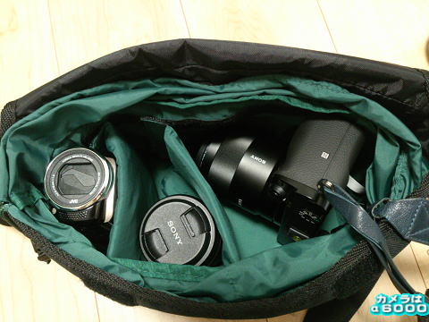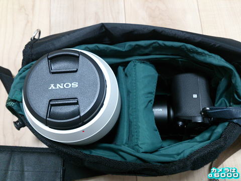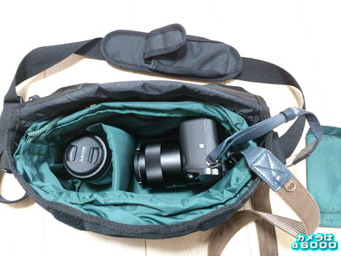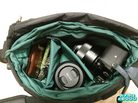 これは実際にレンズ2本とα6000を入れた状態です。所々にまだ余裕があります。