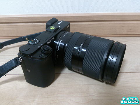 取り付けると前がちょっと重たくなります。なんせ460gなのでα6000より重いのです。